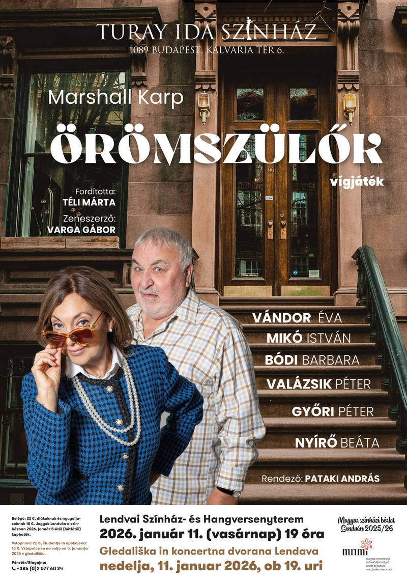 A magyar bérletesek 2026. január 11-én, vasárnap, 19. órakor a Turay Ida Színház előadásában az Örömszülők című vígjátékot tekintették meg a Lendvai Színház- és Hangversenyteremben.