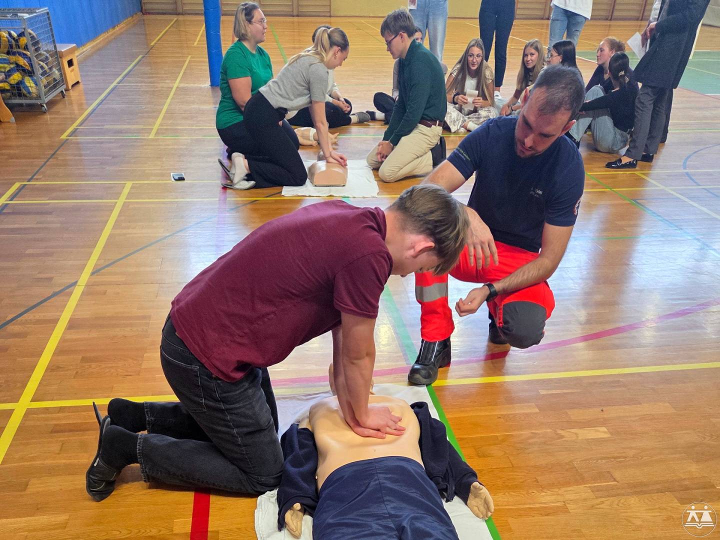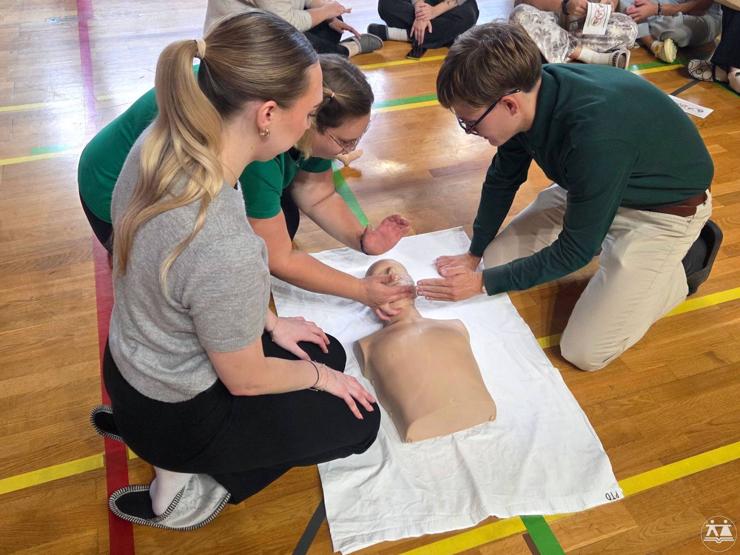 • A második műhely gyakorlati jellegű volt – a diákok maguk is kipróbálhatták az alapvető újraélesztési eljárásokat felnőtt és gyermek bábukon. Ezzel értékes ismereteket szereztek arról, hogyan kell cselekedni vészhelyzetekben, és hogyan lehet életeket menteni a megfelelő elsősegélynyújtással.