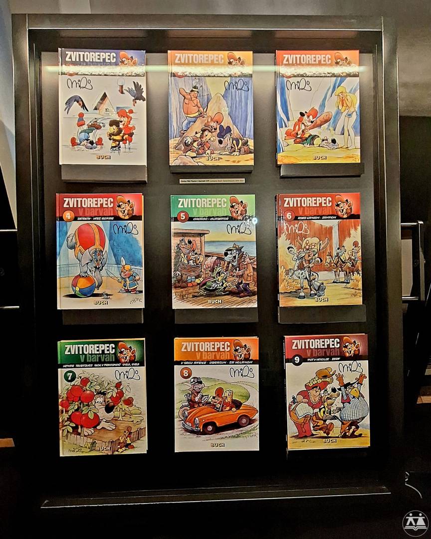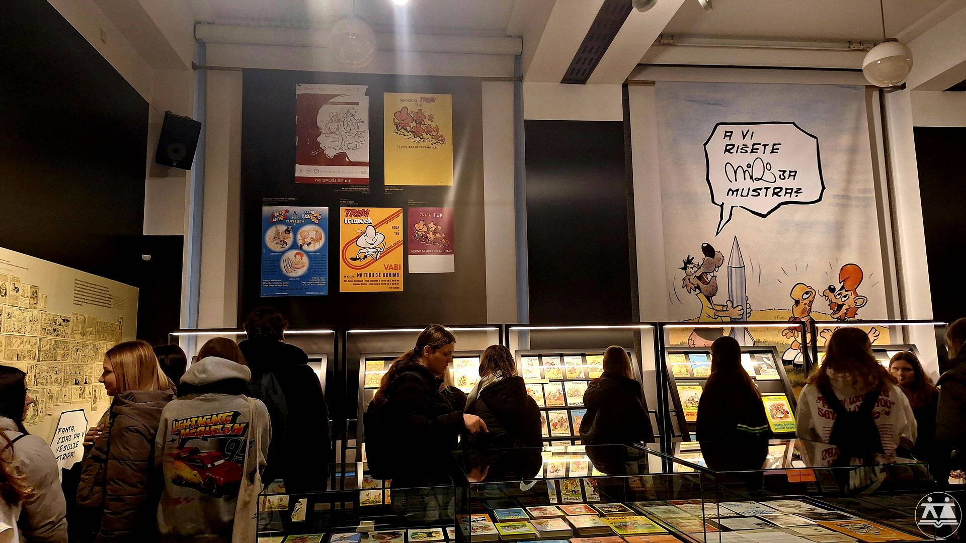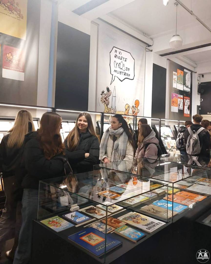 A könyvtárban Nina idegenvezető részletesebben bemutatta nekünk Jože Plečnik építész életét és munkásságát, továbbá a könyvtár néhány helyiségét. Megnéztük a Miki Muster születésének 100. évfordulója alkalmából rendezett, „A vi rišete Mikija Mustra?” című érdekes kiállítást is, amely eredeti módon nyújt betekintést a szlovén képregény kedvelt alkotójának és kivételes illusztrátorának életébe és munkájába; Muster több olvasó- és nézőgenerációra is maradandó hatást gyakorolt.